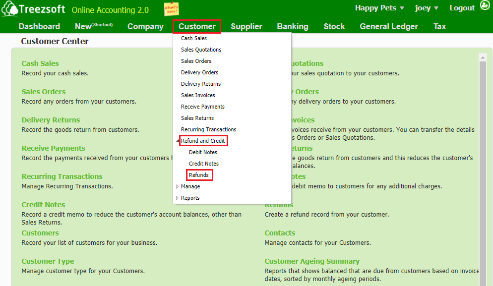 Overpayment from customers means that the customers pay you more than what they required to pay. An example to record down the transaction step by step in Treezsoft Accounting are shown as below.