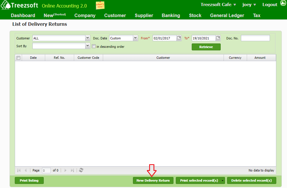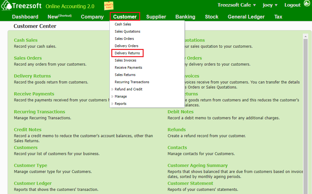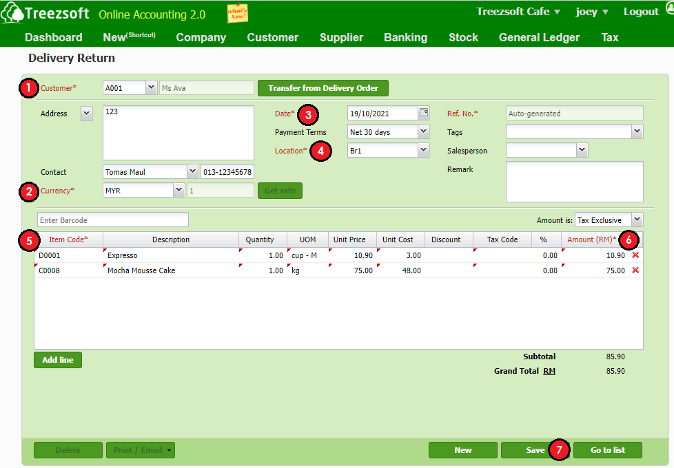 Delivery return is a form that records the specific information of the product return from your customers after purchase. For example, customer A has bought a New York Cheese Cake from Treezsoft Cafe, and the cake has been damaged during the delivery. Customer A wishes to return the cake to Treezsoft Cafe. Therefore, Treezsoft Cafe will need to record down the delivery return. In this blog, we will guide you step by step on how to record delivery returns by using Treezsoft Cloud Accounting Software.