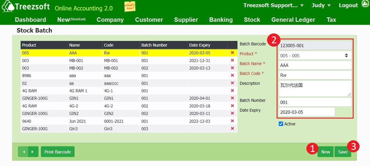 2. Enter the stock batch details accordingly.