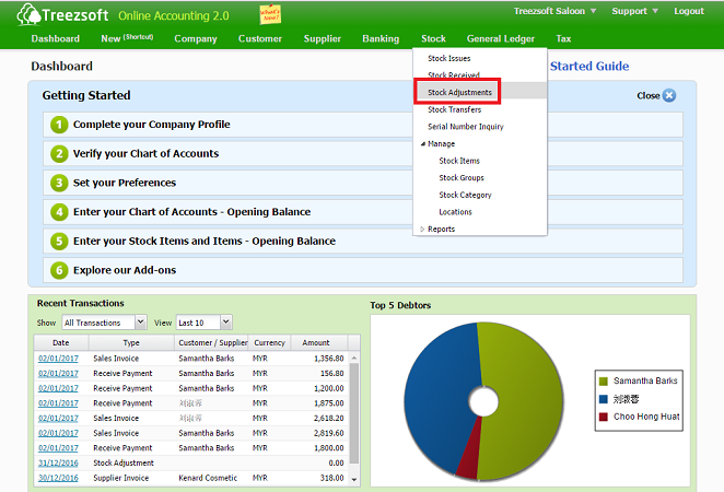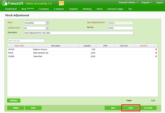 You have now completed stock adjustment with Treezsoft Online Accounting!